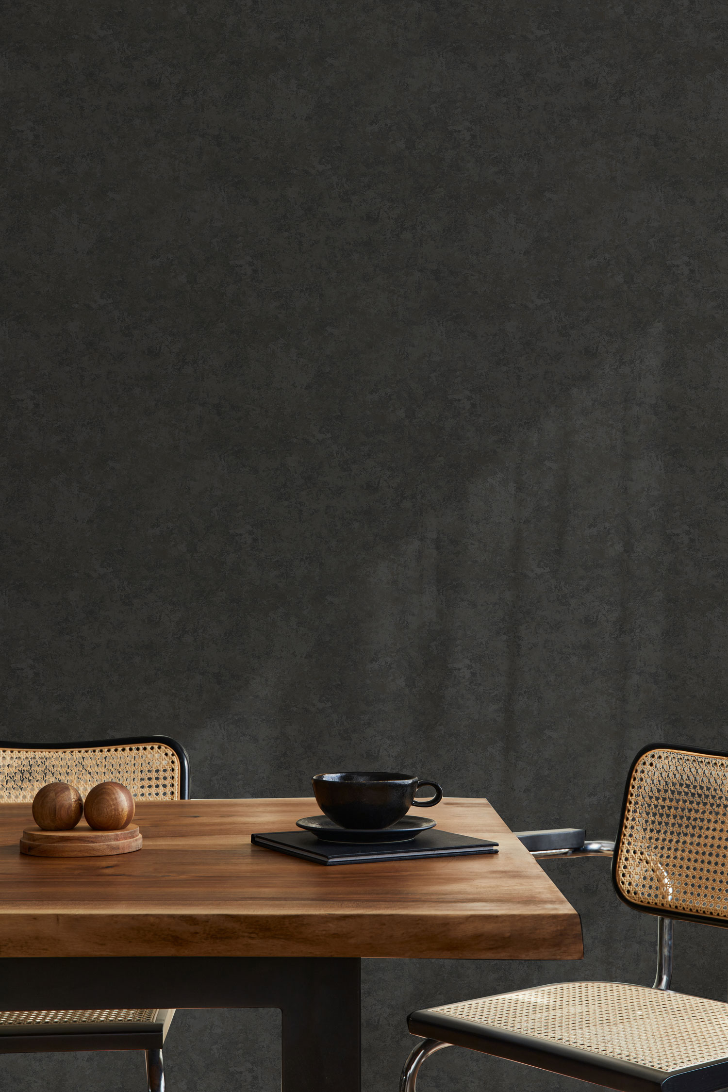 Černá strukturovaná vliesová tapeta na zeď, imitace štukové omítky.