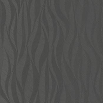 Černá vliesová tapeta s vinylovým povrchem, plastické textury tvoří efektní vlnkový vzor.