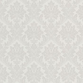 Pololesklá krémová zámecká vliesová tapeta s vinylovým povrchem, imitace jemné textilie, damaškový vzor.