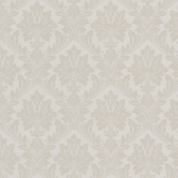 Pololesklá béžová zámecká vliesová tapeta s vinylovým povrchem, imitace jemné textilie, damaškový vzor.