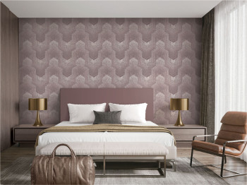 Šedo-hnědá vliesová tapeta s vinylovým povrchem, efektní geometrický vzor se stříbrnými odlesky, nádech starorůžové, textilní struktura.