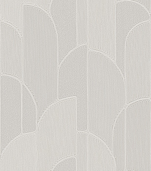 Pololesklá šedá vliesová tapeta s vinylovým povrchem, efektní geometrický vzor evokující stočené šňůrky, plastická struktura.