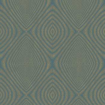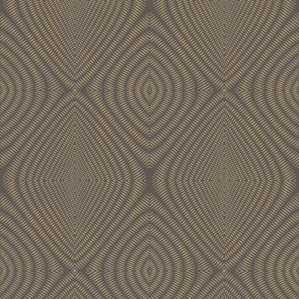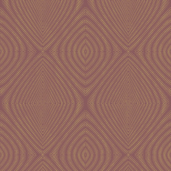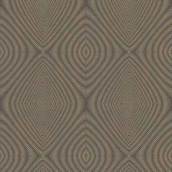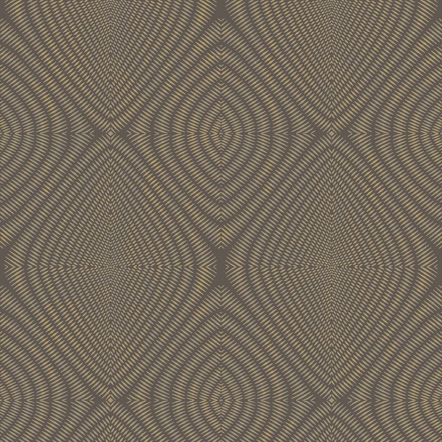 Vliesová tapeta - etnický kosočtvercový vzor. Podklad tmavě hnědý, čárkovaný vzor v barvě metalické zlaté s patinou.