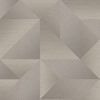 Jemně plastická pololesklá hnědo-šedá vliesová tapeta s vinylovým povrchem, geometrický 3D vzor.