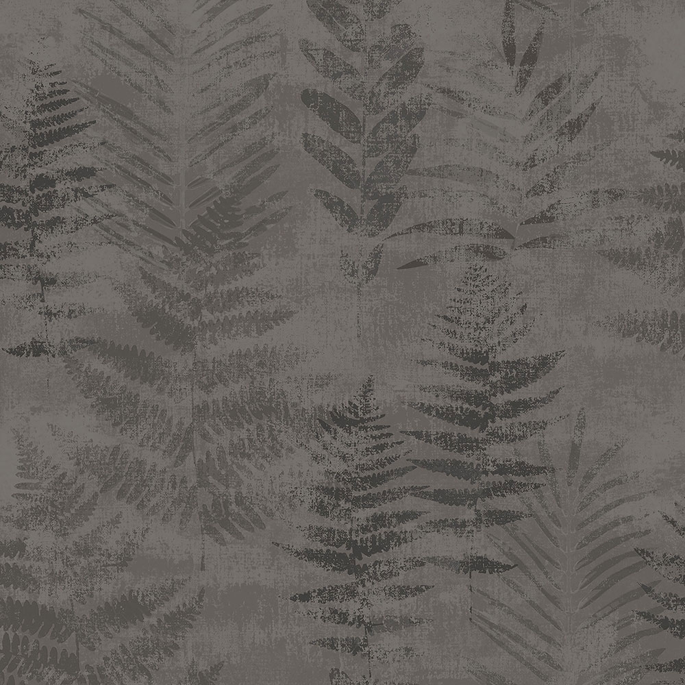 Vliesová tapeta s kapradím a listy v odstínech černo-stříbrné, jemný pololesk.Kombinujte se souvisejícími vzory.
