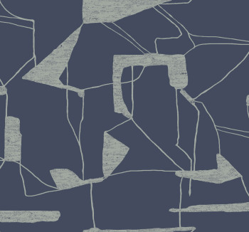 Matná hladká modrá vliesová tapeta na zeď, stříbrný plastický geometrický vzor.
