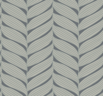 Vliesová tapeta na zeď, šedý podklad, smetanově bílé listy se stříbrnými plastickými obrysy.