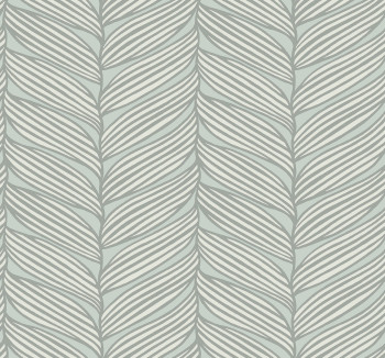 Vliesová tapeta na zeď, světlý šedo-modrý podklad, smetanově bílé listy se stříbrnými plastickými obrysy.