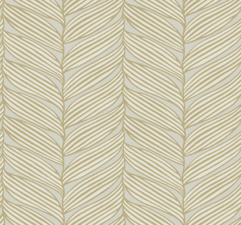 Vliesová tapeta na zeď, šedý podklad, smetanově bílé listy se zlatými plastickými obrysy.