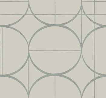 Šedo-béžová / taupe hladká vliesová tapeta na zeď, plastické stříbrné linie a kruhy.