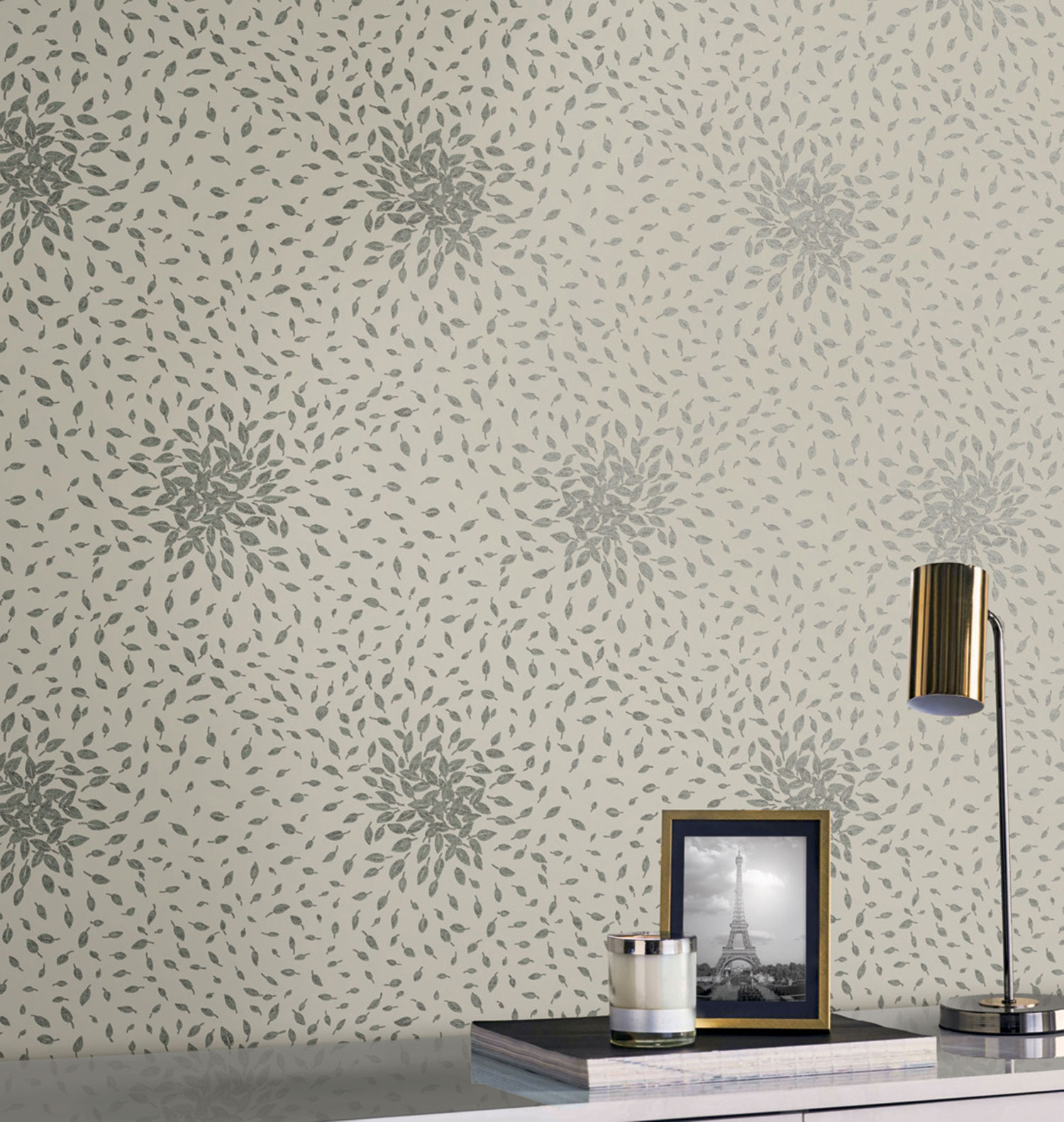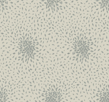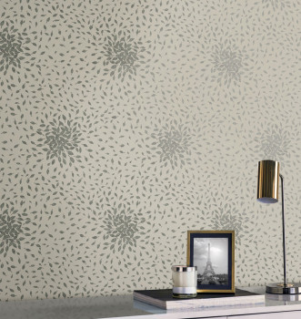 Béžová vliesová tapeta na zeď, hladký podklad, plastické stříbrné lístky.