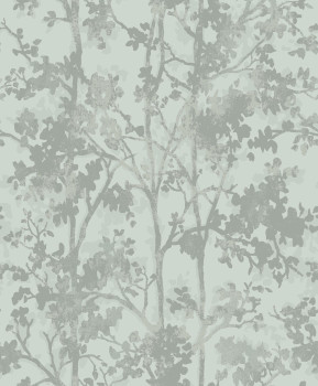 Modro-šedá vliesová tapeta na zeď, plastický květinový vzor v metalické stříbrné.