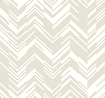 Bílá vliesová tapeta na zeď, zlatý plastický cik cak vzor.