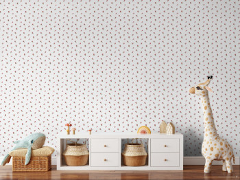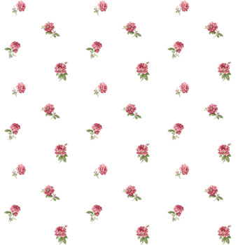 Matná, bílá vliesová tapeta na zeď s květinovým vzorem s listy ve vínové a zelené barvě.