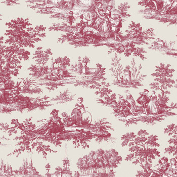 Matná béžová tapeta s motivem vínových postav ve viktoriánském stylu v přírodě a parku. Foto interiéru je pouze ilustrační - odlišné barvy.