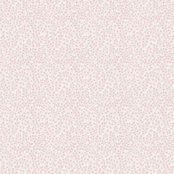 Matná, bílá vliesová tapeta na zeď s drobnými listovými větvičkam v růžové barvě.