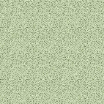 Matná, zelená vliesová tapeta na zeď s drobnými listovými větvičkam v zelené barvě.