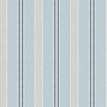 Matná vliesová pruhovaná tapeta na zeď, odstíny modré, bílé a šedé. Foto interiéru je pouze ilustrační - odlišné barvy.
