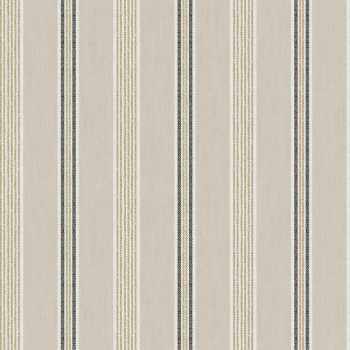 Matná vliesová pruhovaná tapeta na zeď, odstíny béžové, bílé, hnědé a okrové. Foto interiéru je pouze ilustrační - odlišné barvy.