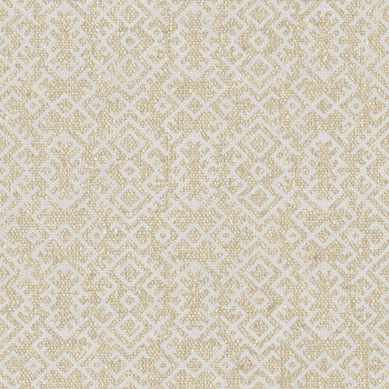 Luxusní vliesová tapeta s vinylovým povrchem, geometrický etno vzor v perlově šedé, hrubá látková textura.