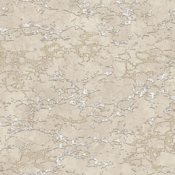 Luxusní plastická béžová vliesová tapeta s vinylovým povrchem, imitace historické štukové omítky, prosvítající zlaté a stříbrné metalické plochy.