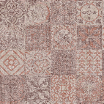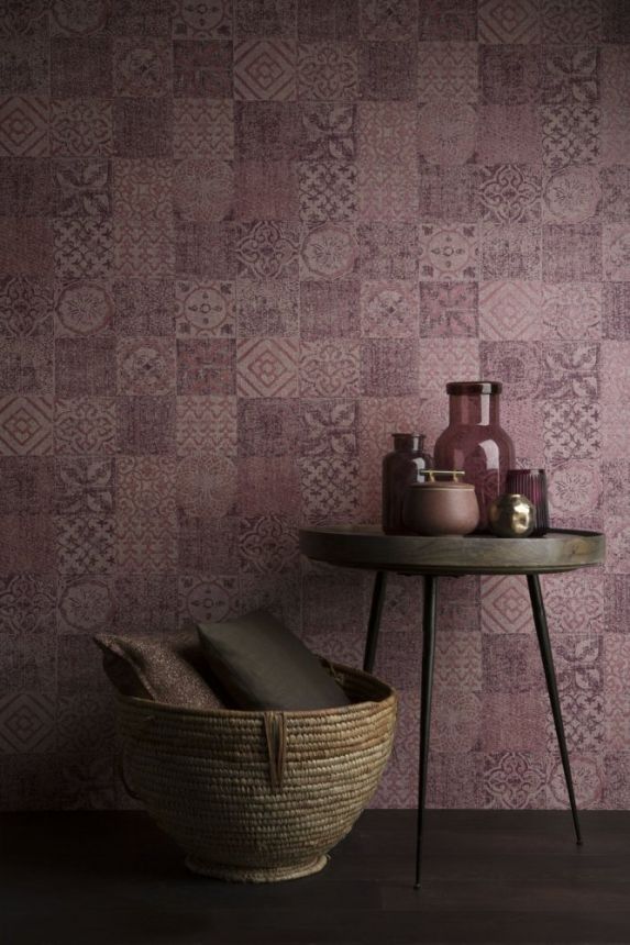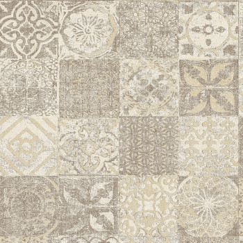 Vliesová tapeta s jemně plastickým mozaikovým vzorem s patinou. Odstíny hořčicové a hnědo-šedé. Hořčicové vzory v decentním pololesku.