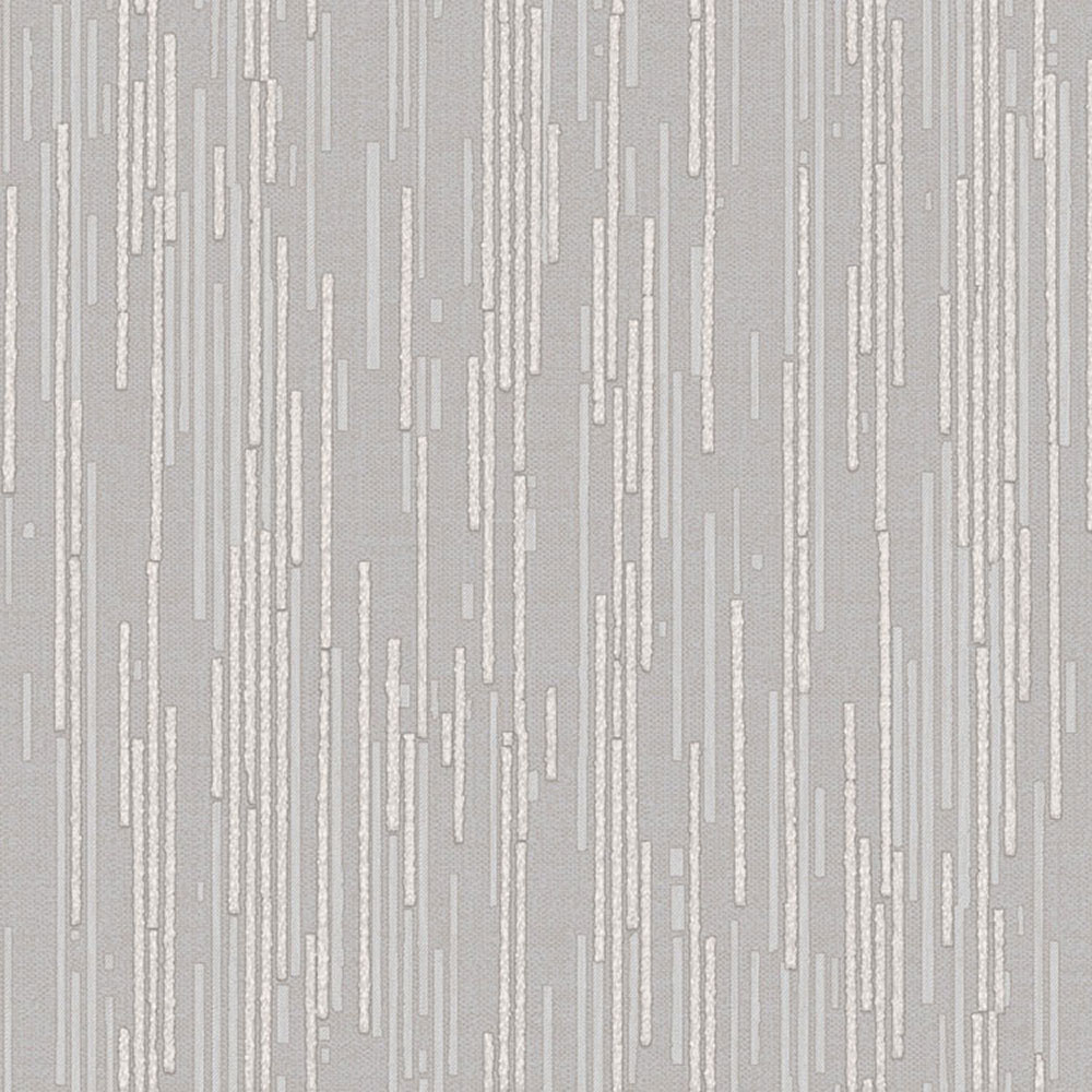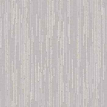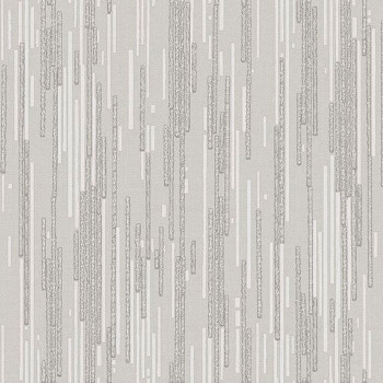 Luxusní plastická šedá vliesová tapeta s vinylovým povrchem, vzor nepravidelných krémových proužků se stříbřitými odlesky, látková textura.