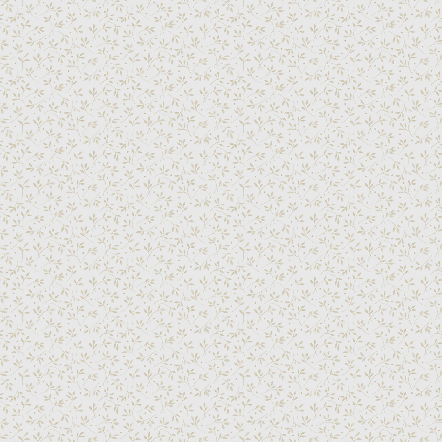 Matná, bílá vliesová tapeta na zeď s drobnými větvičkami v okrové barvě na podkladě imitující jemnou omítku.