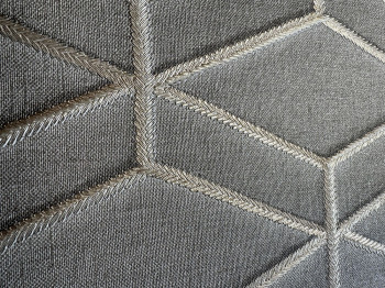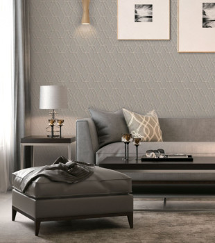 Luxusní vliesové tapety s vinylovým povrchem - design hedvábné šedé textilie s jemným pololeskem, obrysy vzoru - zlaté metalické "prošívání".