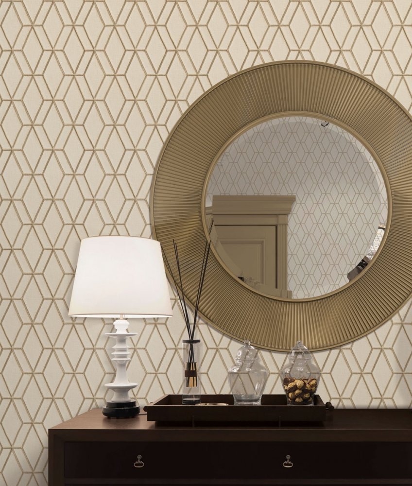 Luxusní vliesové tapety s vinylovým povrchem - design hedvábné béžové textilie s jemným pololeskem, obrysy vzoru - metalické "prošívání".