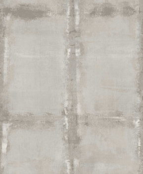 Matná šedá vliesová tapeta s vinylovým povrchem, výrazný geomterický vzor obdelníků šedo-bílé barvy, podklad imitující látku. Foto interiéru je pouze ilustrační - odlišné barvy.