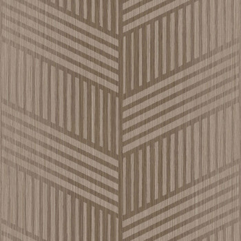Jemně plastická, hnědo-zlatá vliesová tapeta s vinylovým povrchem, geometrický pruhovaný vzor s jemným leskem.