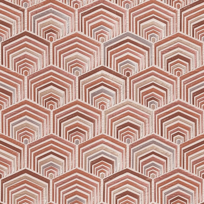 Netradiční geometrická vliesová tapeta s vinylovým povrchem. Vzor tapety v odstínech terakota, starorůžové a hnědé. Jemný metalický lesk. Ideální tapeta do ložnice, nebo obývacího pokoje.