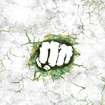 Vliesová tapeta na zeď, Street Art motiv - odstíny šedo-stříbrné, zelené a zlaté.