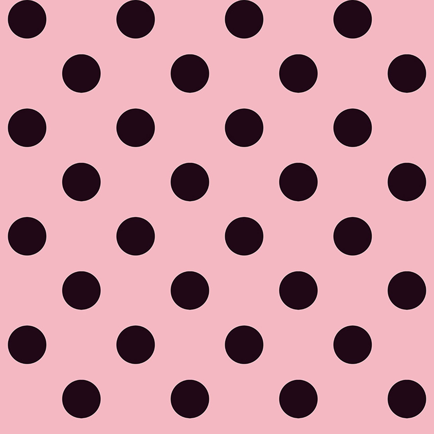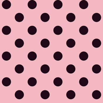 Hladká růžová vliesová tapeta na zeď, černé puntíky.