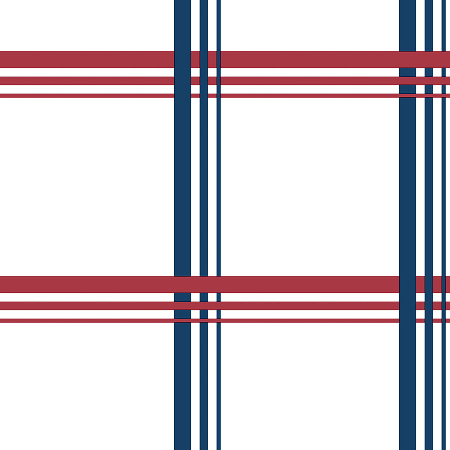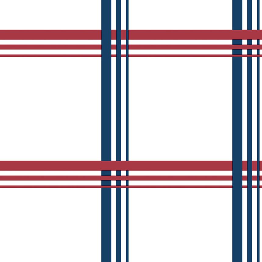Jemně strukturovaná bílá vliesová tapeta, modré a červené linie tvoří károvaný vzor.