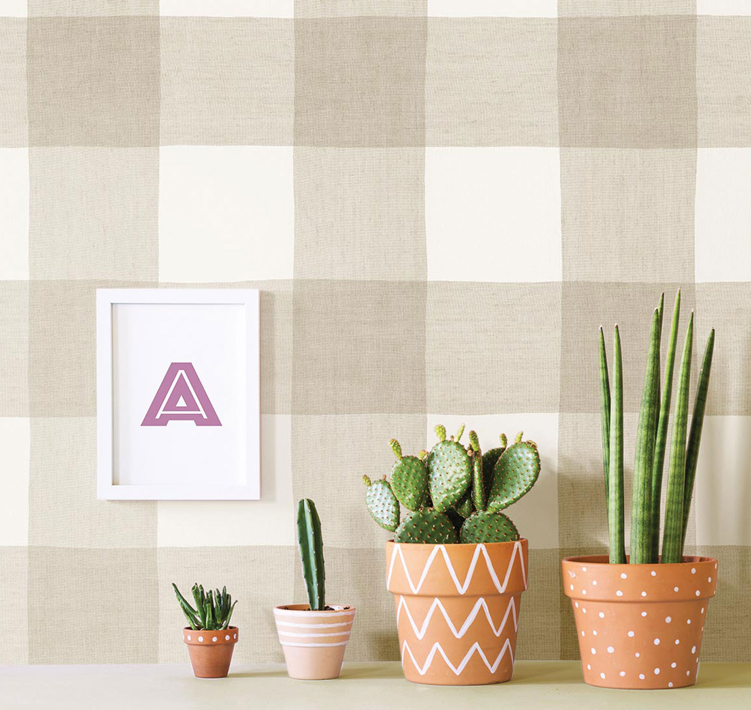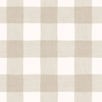 Béžovo-bílá vliesová tapeta na zeď, vzhled a textura kárované látky.