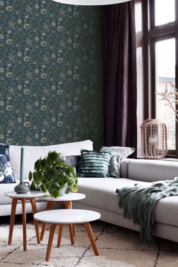 Modrá vliesová květinová tapeta na zeď, 139416, Vintage Flowers, Esta Home