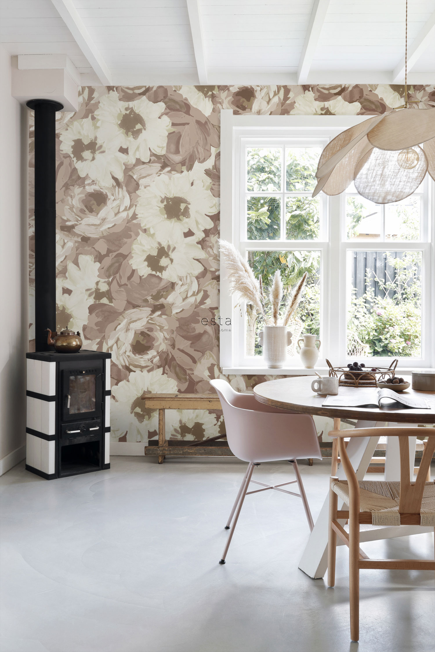 Když se tapety Vintage Flowers spojí s pečlivě vybranými kousky z vintage obchodů a láskyplně uchovávanými dědictvími, jako je například babiččino houpací křeslo, začnou se dít zázraky. Tento jedinečný mix stylů přináší do vašeho domova nejen neopakovatelný styl, ale i teplou, osobitou atmosféru plnou jedinečnosti a pohodlí. Vzniká tak prostor, kde každý prvek vypráví svůj příběh a společně tvoří harmonický celek, který je stejně působivý, jako je útulný.