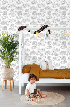 Hladká černo-bílá vliesová tapeta na zeď, motivy divokých zvířat.