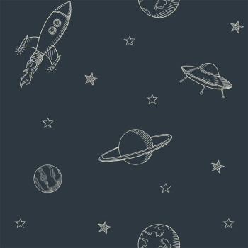 Tmave modrá vliesová tapeta na zeď, hvězdy, planety, Vesmír.
