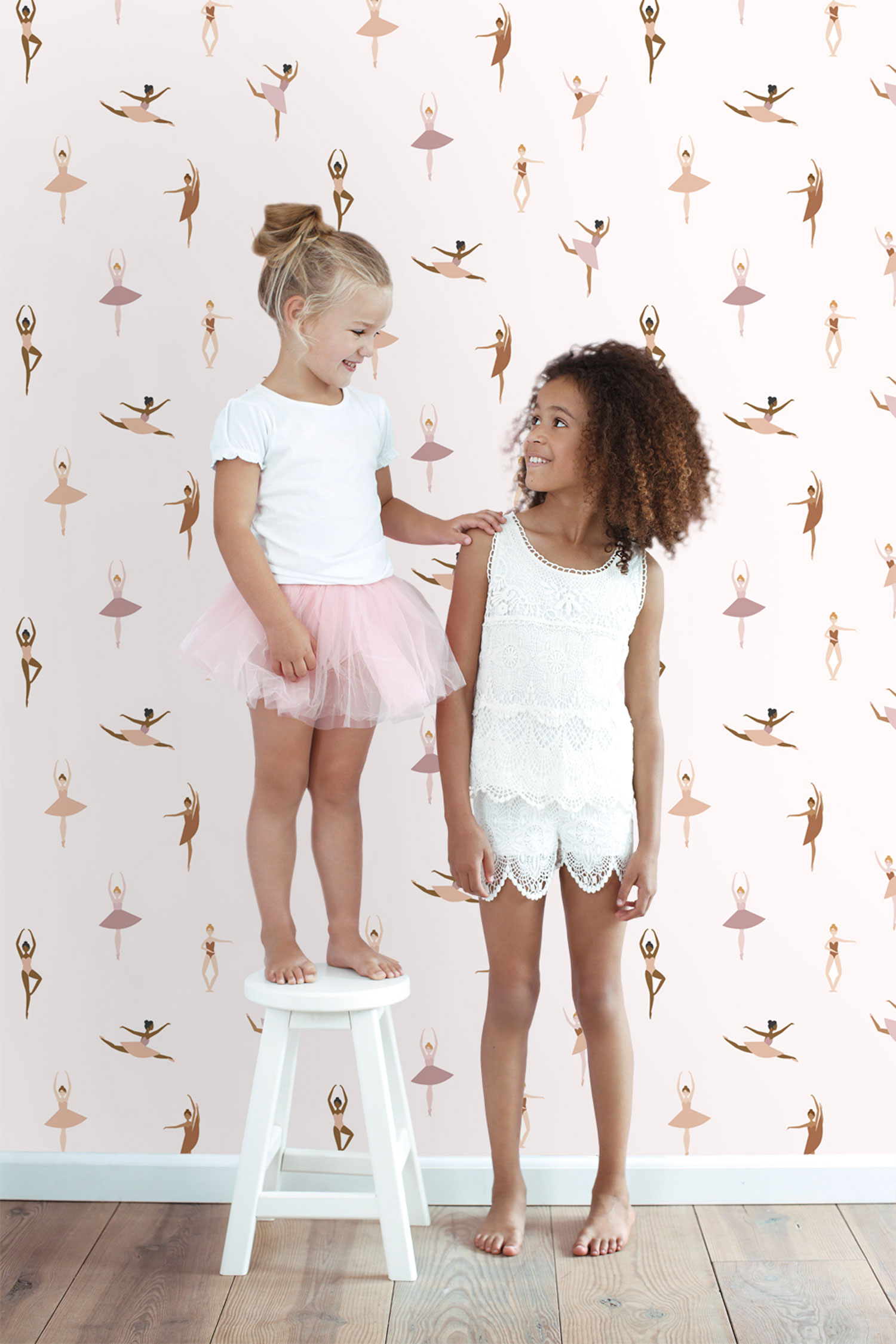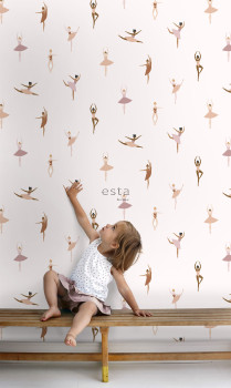 Hladká vliesová tapeta na zeď, baletky v odstínech hnědé, béžové a růžové.