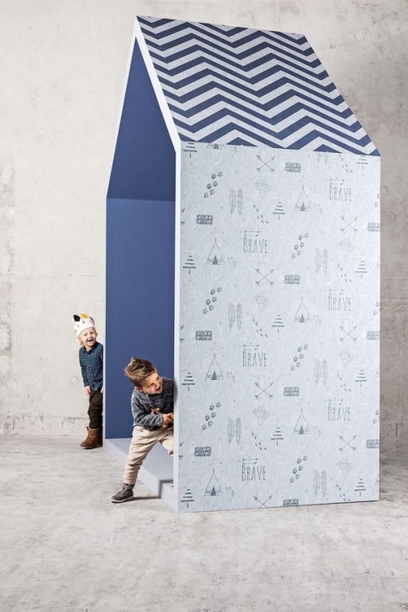Vliesová, dětská omyvatelná tapeta v modrých a šedomodrých odstínech.