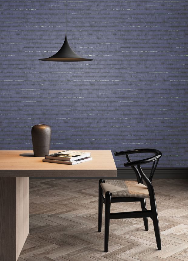 Luxusní, jemně plastická, geometrická vliesová tapeta na zeď, odstíny modré, černé a pololesklé zelené.