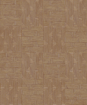 Geometrická vliesová tapeta na zeď, vzor tvořený jemně plastickými liniemi, odstíny hnědé, terrakota a zlaté.