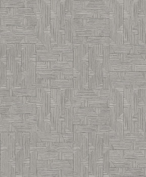 Geometrická vliesová tapeta na zeď, vzor tvořený jemně plastickými liniemi, odstíny hnědo-šedé a stříbrné. Foto interiéru je pouze ilustrační - odlišné barvy.
