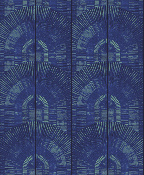 Luxusní vliesová tapeta na zeď, efektní vzor ve stylu Art Deco - barva modrá a metalická zelená..