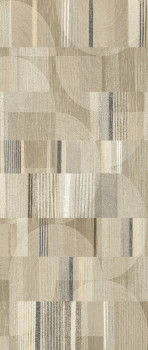 Geometrická vliesová obrazová tapeta v odstínech terrakota, béžové a šedé , hrubší látková textura. Pro větší šířku lze kombinovat se vzory DGSPI1021 a DGSPI1022 - viz foto