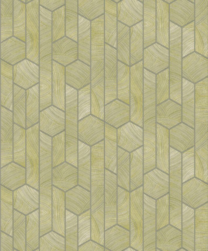 Jemně plastická geometrická vliesová tapeta na zeď, odstíny khaki a šedé. Foto interiéru je pouze ilustrační - odlišné barvy.