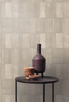 Jemně plastická vliesová tapeta na zeď, vzor v odstínech hnědé a šedé.